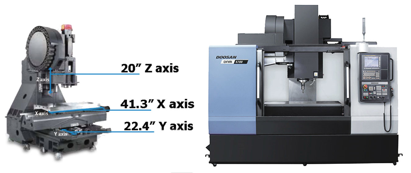 Our 2 Newest Mills are Stable, Powerful, Extremely Accurate CNC Mills. They have large working envelopes. These Mills can move 20" maximum up / down travel under spindle Z axis, 41.3" maxumum right / left X axis travel and a 22.4" maximum in / out Y axis travel.