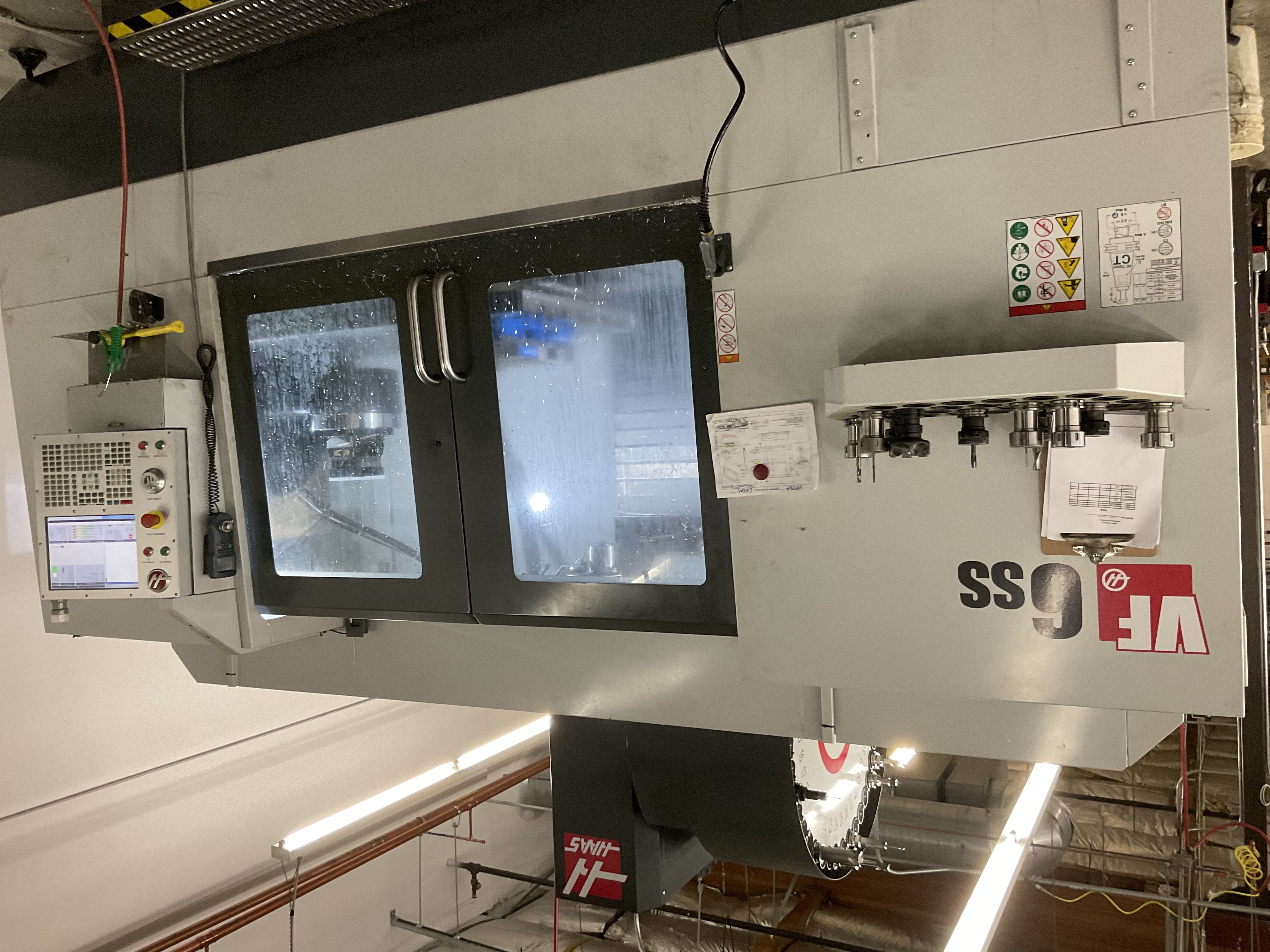 Our Haas VF6 possesses 5 axis capabilities with its TRT 310 rotary table. The machine boasts an expansive 64" x 32" x 30" envelope, a 40 tool high speed tool changer, a 12,000 rpm spindle, wireless probing as well as 1200 IPM rapids and a 833 IPM max feed rate.